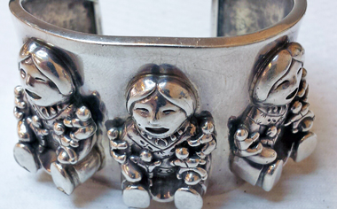 Repair, is when an item is fixed. You may see some signs of the original damage. For example, if you ran over a wide bracelet with figures on it, the bracelet can be reshaped and polished. After it is repaired, it will fit well and look very good, but on very close inspection you may notice a slight indentation on the rim. Also, a few details on the figures may not be as fine in detail.